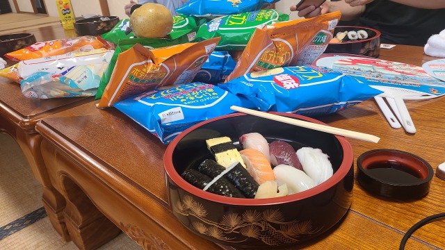 そしてみなさんから事前に申し込みをいただいていた寿司もテーブルに並べます。