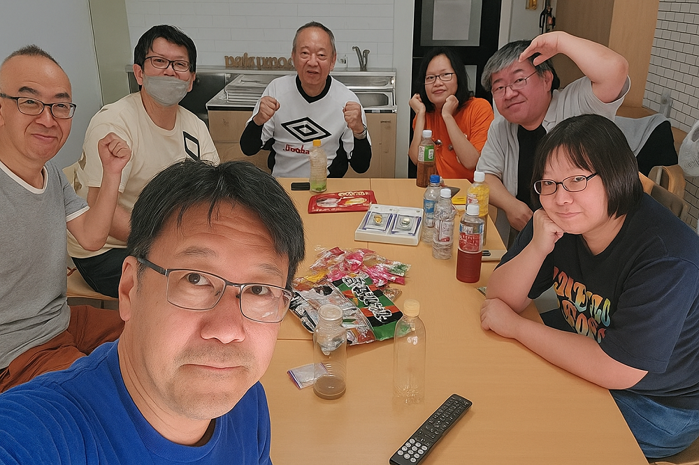 会の途中、画像をAIでいじる話になったので、こちらの集合写真をAIに。