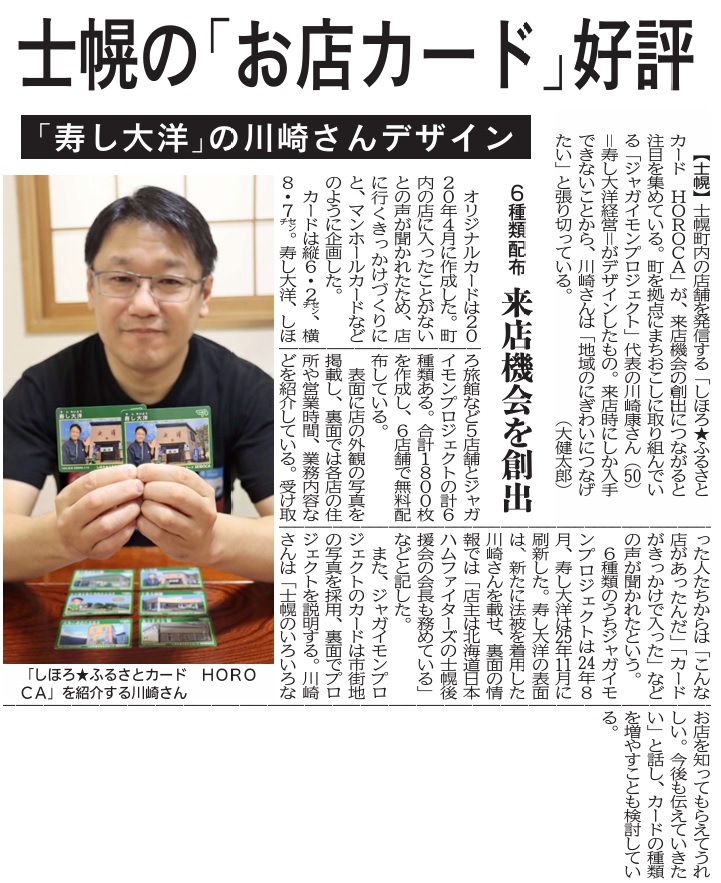 しほろ☆ふるさとカードHOROCAについて掲載いただきました。